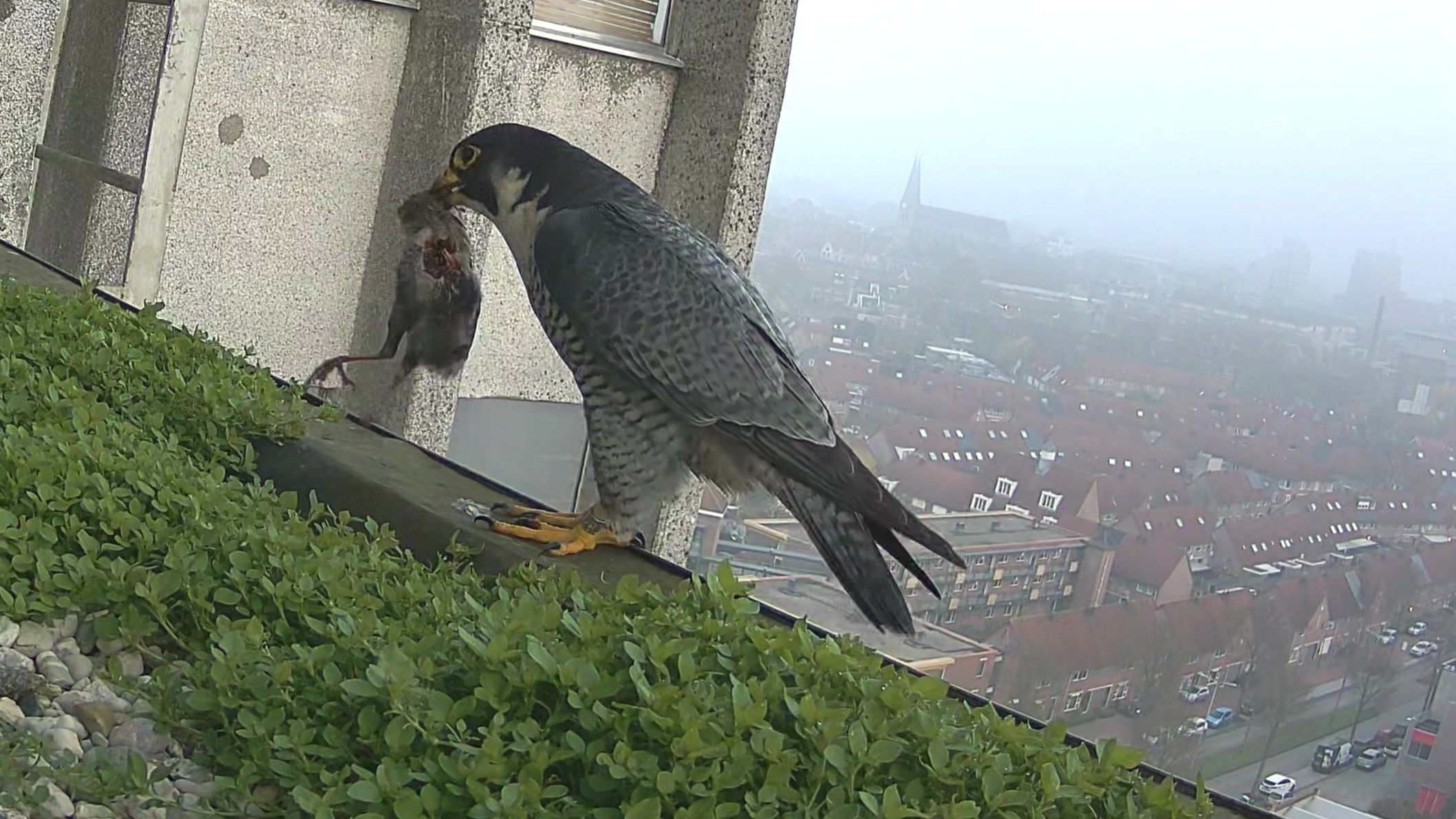 Nieuw dit jaar is dat we op verzoek van de Vogelwerkgroep na afloop van het broedseizoen de prooiresten op het zijbalkon zullen verzamelen, zodat zij deze kunnen analyseren.